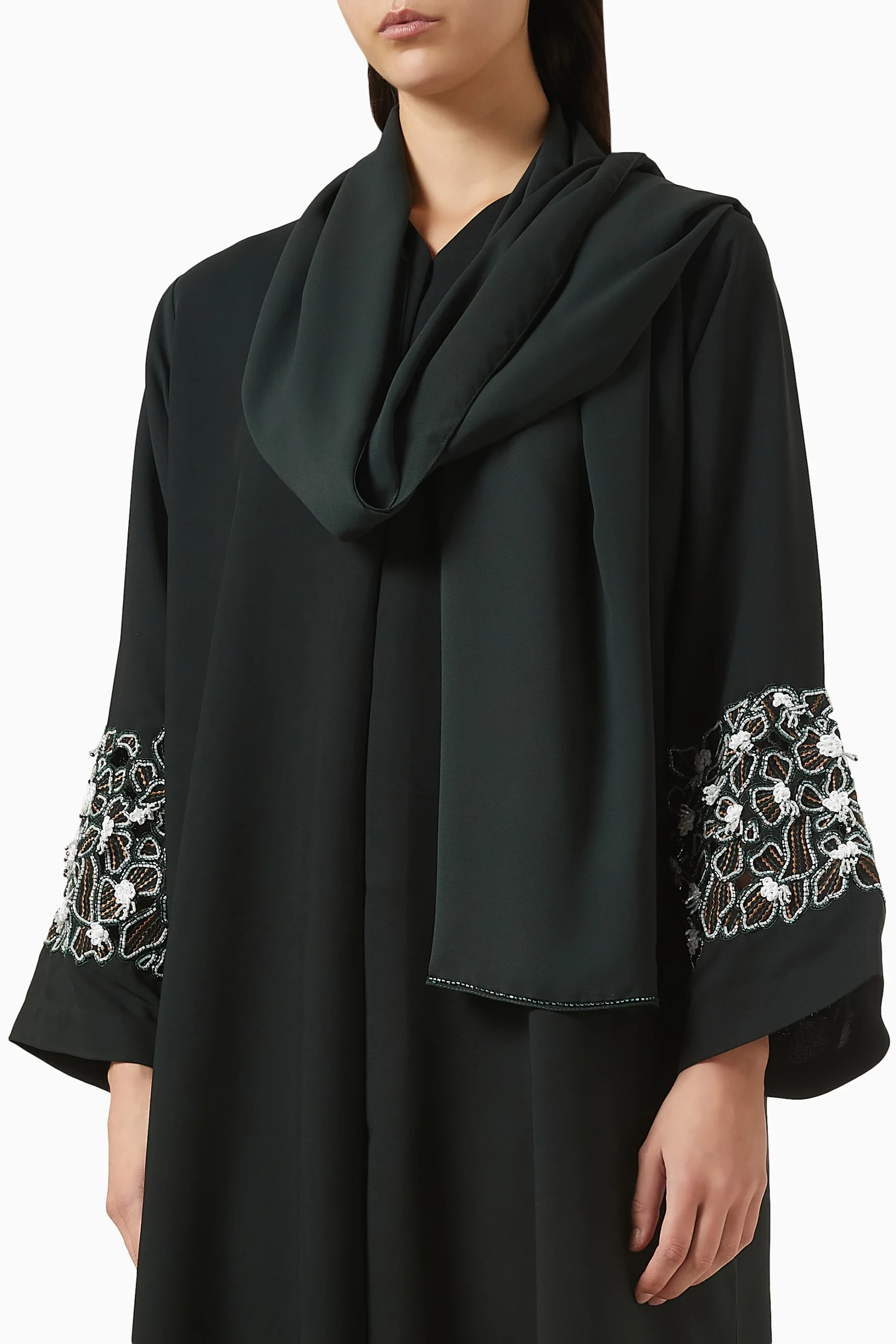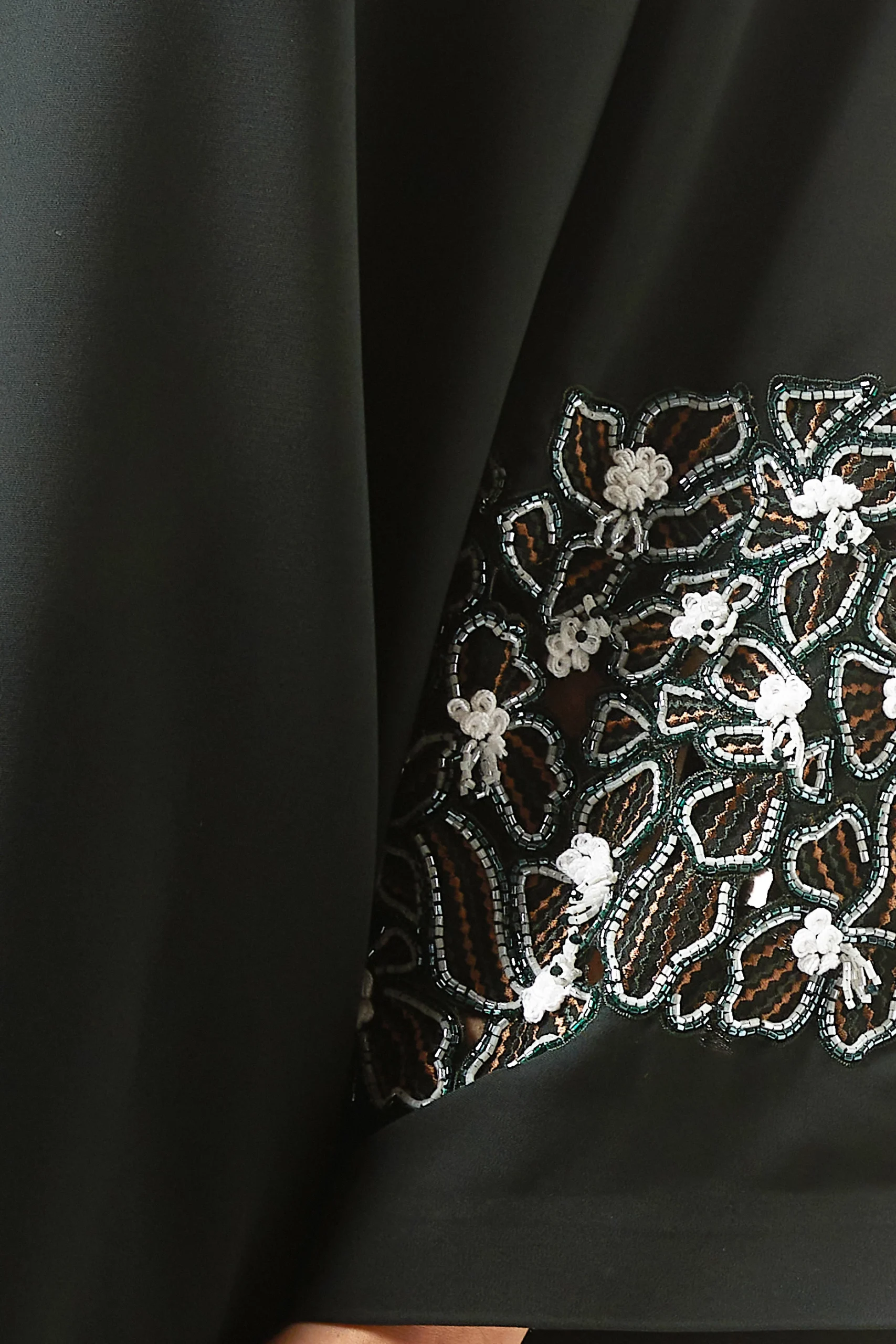 تجسد عباية رواء اوفيشيال براعة الماركة الاستثنائية ودقة تفاصيلها، فهي مصممة بقصة انسيابية تمنحك شعورًا بالراحة وحرية الحركة في المناسبات الأنيقة وتزينها تفاصيل مفرغة وتطريزات رقيقة بالخرز تضفي عليها لمسة ساحرة.