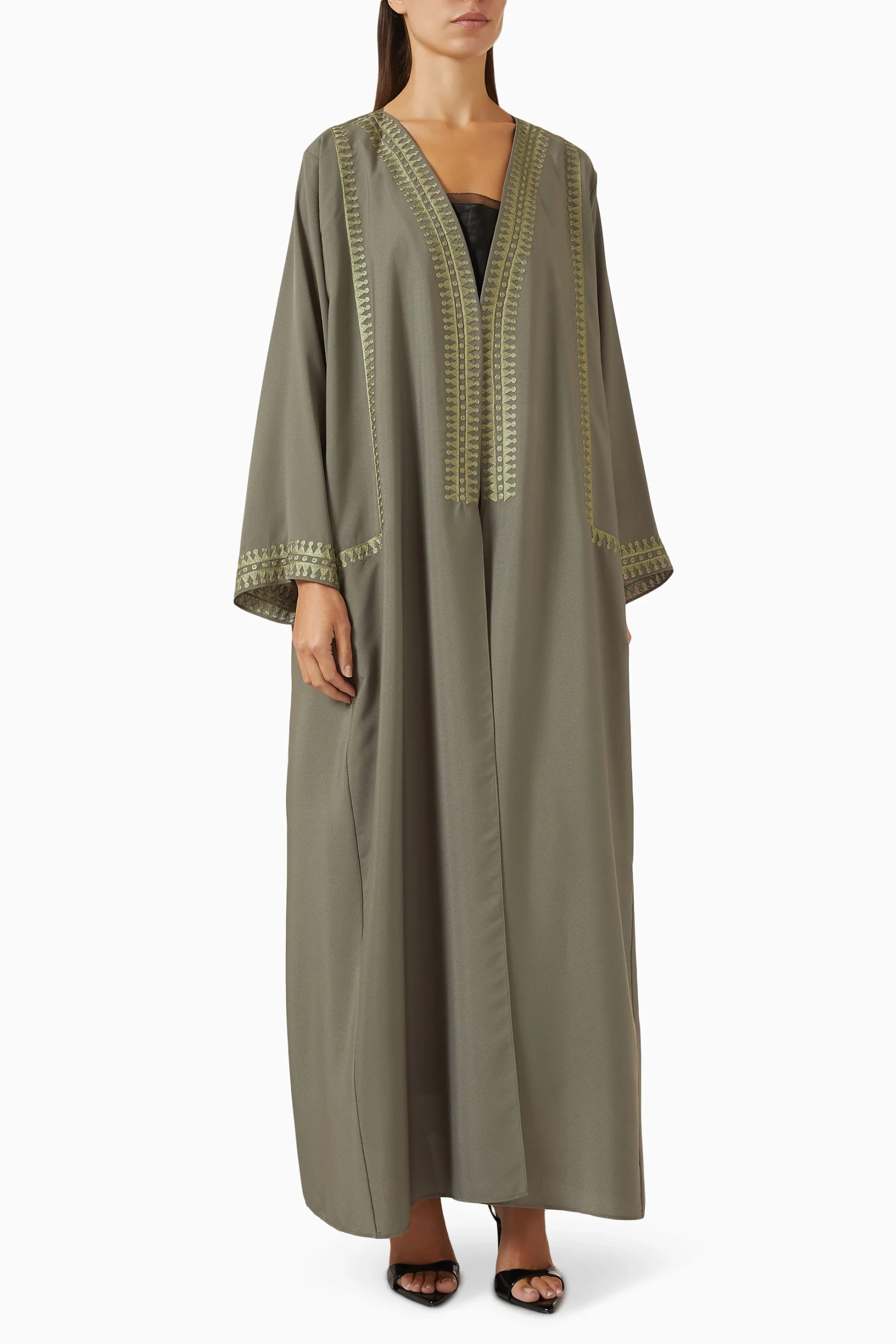 عززي من أناقة إطلالتك اليومية بارتداء هذه العباية التي تأتيك بتصميم كلاسيكي رقيق مفعم بالرقي، وتجمع بين اللمسات التقليدية الساحرة والتفاصيل العصرية لتمنحك إطلالات متنوعة. كما تزدان بتطريزات هندسية رقيقة في الأمام وعلى الأكمام تكسبها طابعًا فريدًا.