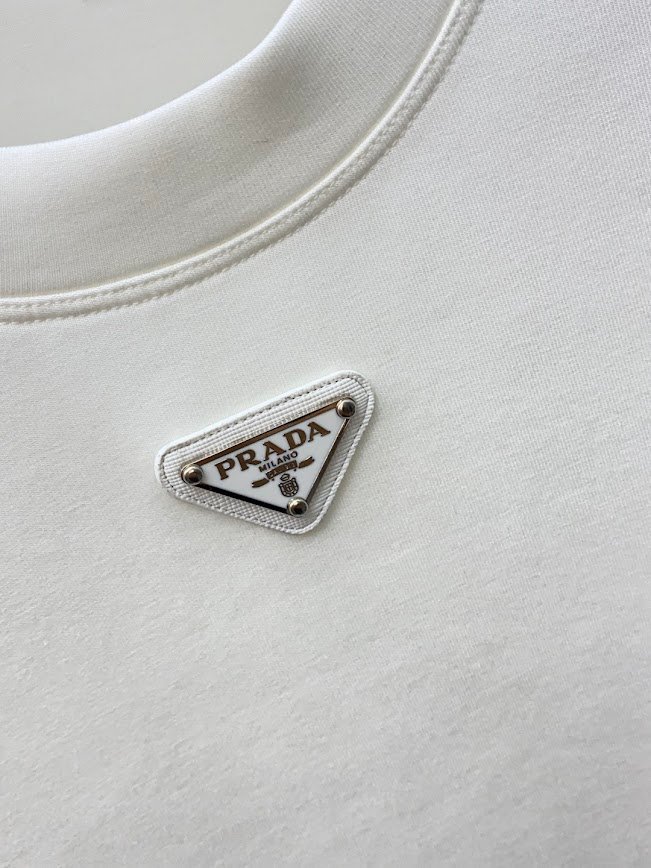 أحد أبرز عناصر الجذب في هذا التيشيرت هو لوقو Prada Milano الموجود على الصدر، والذي يأتي بتصميم أنيق مع لمسة فخامة واضحة. هذا اللوقو يعكس هوية العلامة التجارية العالمية، ويضيف قيمة جمالية للقطعة دون أن يجعلها مبالغ فيها. التوازن بين البساطة والتفاصيل الدقيقة هو ما يجعل هذا التيشيرت مميزًا عن غيره من المنتجات.