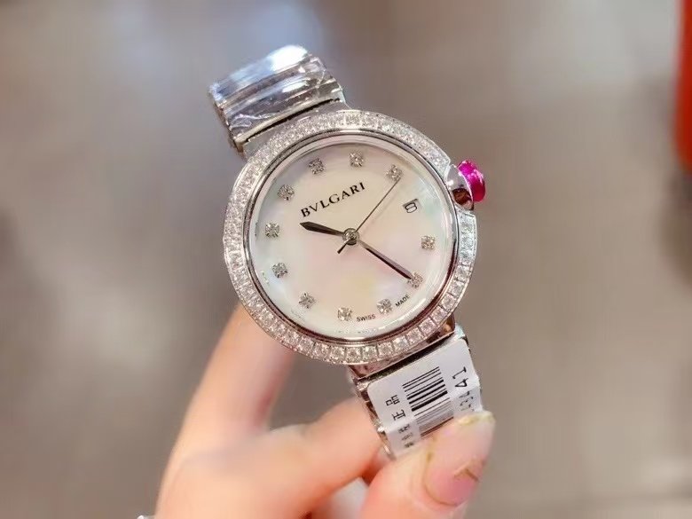 أما من ناحية التفاصيل، فإن إطار الساعة المرصع بالألماس يضيف قيمة فاخرة واضحة، حيث تم توزيع الفصوص بشكل متناسق يمنح الساعة لمعانًا أنيقًا دون مبالغة. هذا يجعل ساعة بولغاري ألماس خيارًا مثاليًا للنساء اللواتي يفضلن الفخامة الهادئة بدلاً من التصاميم الصاخبة.