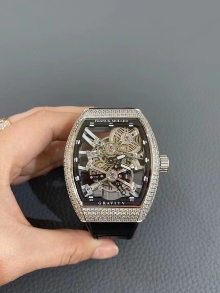 تجي بتصميم Skeleton مكشوف يبرز تفاصيل الماكينة الداخلية بشكل جذاب، مع إطار مرصع بالألماس يعطي لمعة فخمة جدًا تلفت الانتباه.