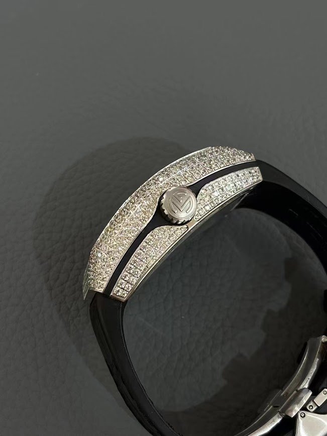 ساعة Franck Muller رجالي – جلد أسود بإطار مرصع بالألماس وماكينة سويسرية