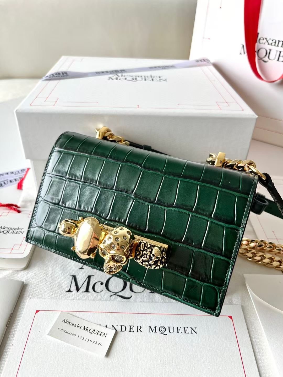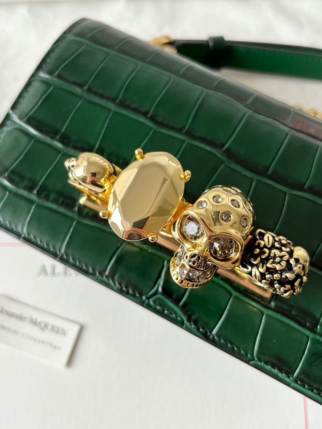 شنطة يد نسائية Alexander McQueen – جلد أخضر فاخر بنقشة