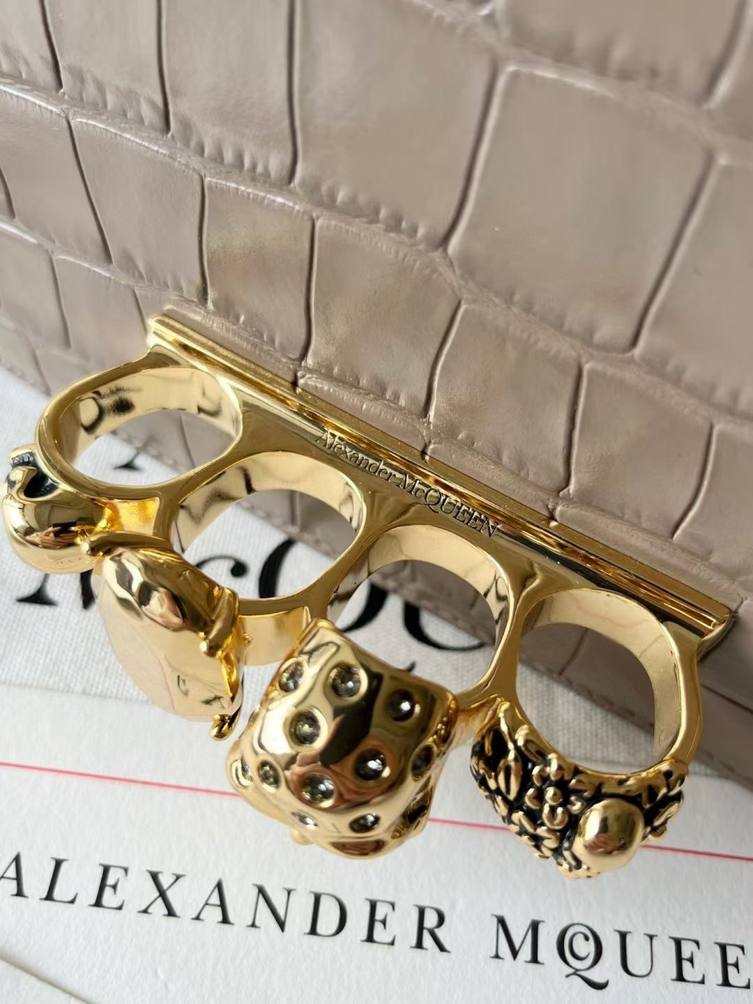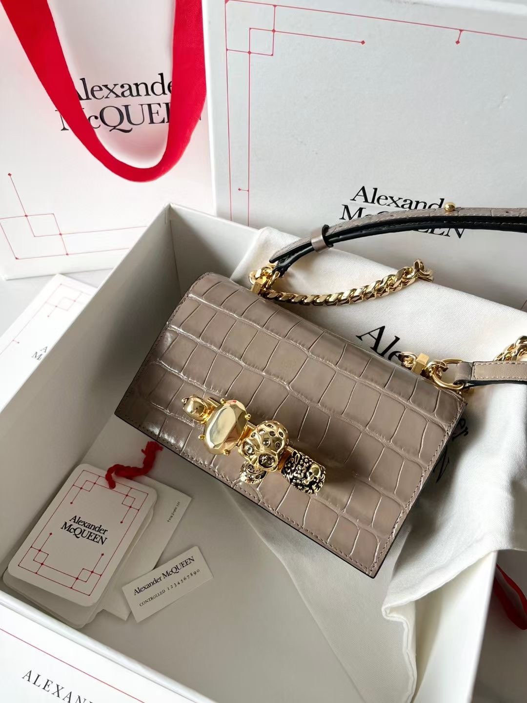 إذا تبين قطعة تجمع بين الفخامة والجرأة، شنطة Alexander McQueen هذي مصممة عشان تبرز ذوقك
