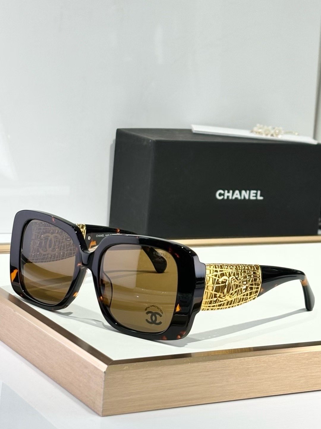 التفاصيل الذهبية مع لمسة شانيل الفخمة تخلي النظارة قطعة مميزة تكمل إطلالتك سواء في الطلعات اليومية أو المناسبات.